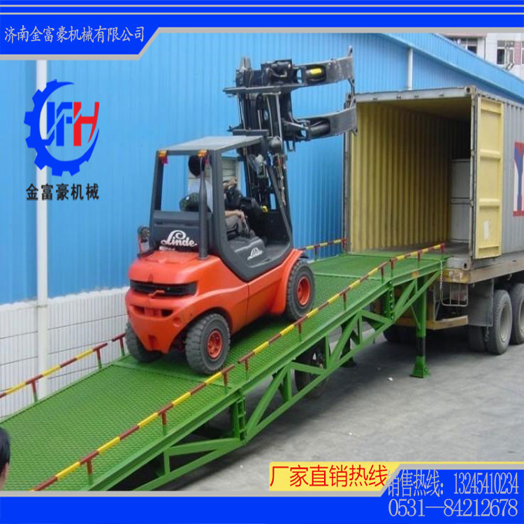 移動(dòng)式液壓登車橋是與叉車配合使用的貨物裝卸輔助設(shè)備,可根據(jù)汽車車廂的高低調(diào)節(jié)高度,叉車可以直接通過(guò)本設(shè)備駛?cè)胲噹麅?nèi)部進(jìn)行貨物的批量裝卸,僅需單人作業(yè),即可實(shí)現(xiàn)貨物的快速裝卸。它使企業(yè)減少大量勞力,提高工作效率,獲取更大經(jīng)濟(jì)效益。