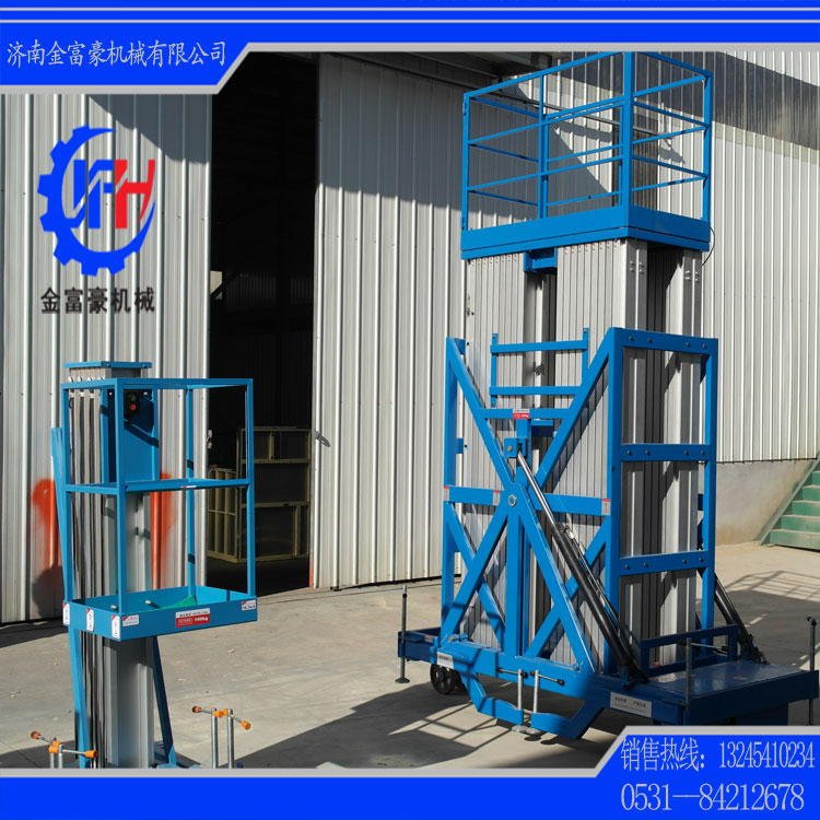 濟(jì)南金富豪機(jī)械設(shè)備有限公司生產(chǎn)的鋁合金升降平臺(tái)采用四桅柱式結(jié)構(gòu),穩(wěn)定性極好,運(yùn)轉(zhuǎn)靈活,載重量大,平臺(tái)面積大,推行方便。它輕盈的外觀,能在極小的空間內(nèi)發(fā)揮最高的舉升能力。使升降臺(tái)的偏轉(zhuǎn)與擺動(dòng)極小??捎米麟娏€路、照明電器、高架管道等安裝維護(hù),高空清潔等單人工作的高空作業(yè)。